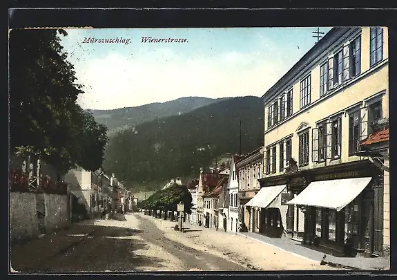 AK Mürzzuschlag, Wienerstrasse mit Warenhandlung
