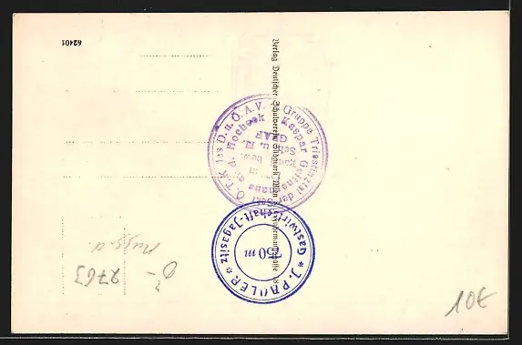 Personenbezogene Daten auf der Rückseite der Karte wurden durch blauen Textmarker unkenntlich gemacht. Die blauen Stellen sind auf die Vorderseite durchgeweicht und wirken sich negativ auf das Postkartenfoto aus