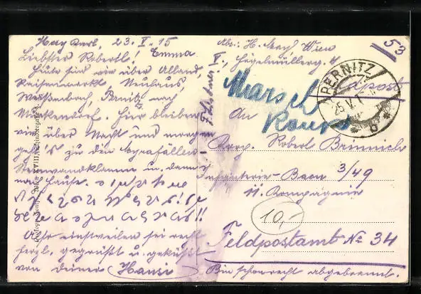 alte Ansichtskarte, gelaufen 1915 als Feldpost, guter Zustand