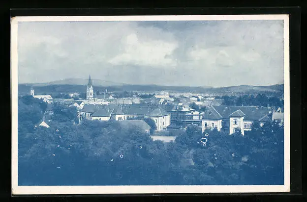 Personenbezogene Daten auf der Rückseite der Karte wurden durch blauen Textmarker unkenntlich gemacht. Die blauen Stellen sind auf die Vorderseite durchgeweicht und wirken sich negativ auf das Postkartenfoto aus