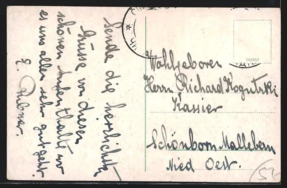 alte Ansichtskarte, gelaufen, Briefmarke entfernt, Eckknicke li. oben u. re., guter Zustand
