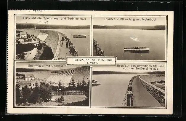 AK Muldenberg i. Vogtl., Muldentalsperre, Blick auf Sperrmauer, Blick auf Stausee