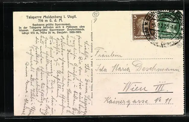 gelaufen 1927, Eckknick oben rechts, guter Zustand