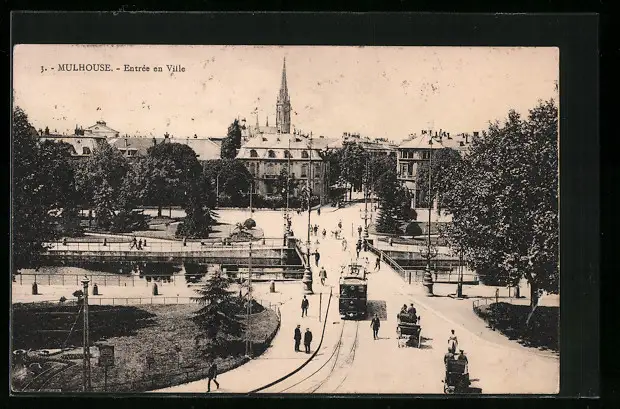 AK Mulhouse, Entrée en Ville, Strassenbahn