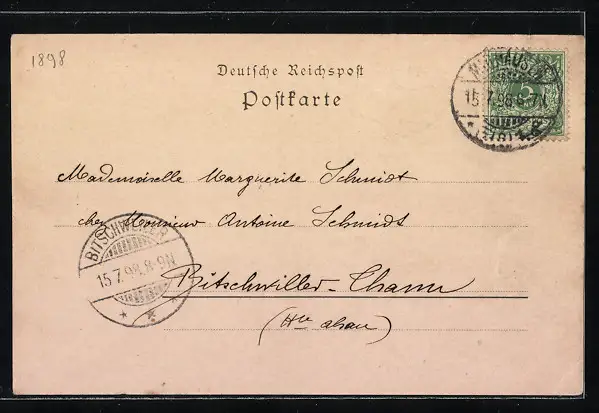 alte Ansichtskarte, gelaufen 1898, Eckknick unten links, guter Zustand