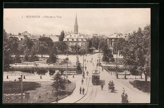 AK Mulhouse, L`Entrée en Ville, Strassenbahn