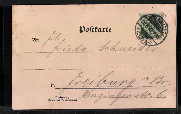alte Ansichtskarte, gelaufen 1899, Eckknick li. oben, guter Zustand