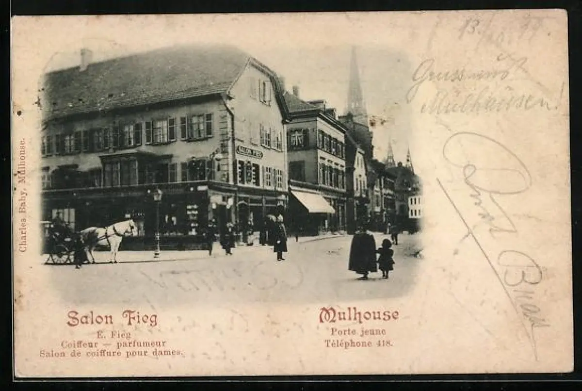 AK Mulhouse, Salon Fieg et scène de rue animée, Propr. E. Fieg