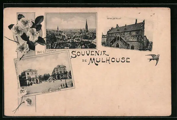 AK Mulhouse, Vue Générale, Hotel de Ville, Nouveau Quartier