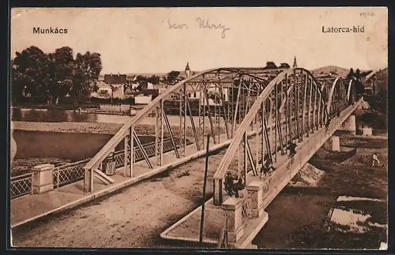 AK Munkacs, Latorca hid, Brücke mit Fluss