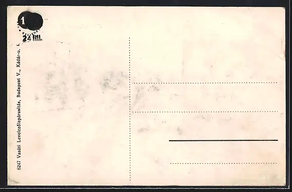 Personenbezogene Daten auf der Rückseite der Karte wurden durch blauen Textmarker unkenntlich gemacht. Die blauen Stellen sind auf die Vorderseite durchgeweicht und wirken sich negativ auf das Postkartenfoto aus