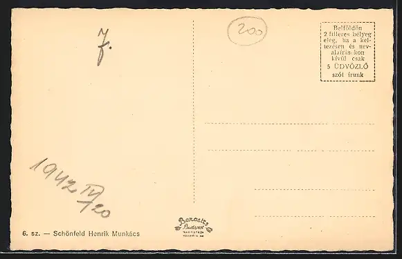 Personenbezogene Daten auf der Rückseite der Karte wurden durch blauen Textmarker unkenntlich gemacht. Die blauen Stellen sind auf die Vorderseite durchgeweicht und wirken sich negativ auf das Postkartenfoto aus