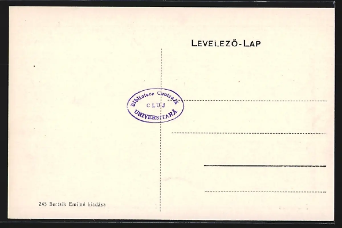 Personenbezogene Daten auf der Rückseite der Karte wurden durch blauen Textmarker unkenntlich gemacht. Die blauen Stellen sind auf die Vorderseite durchgeweicht und wirken sich negativ auf das Postkartenfoto aus