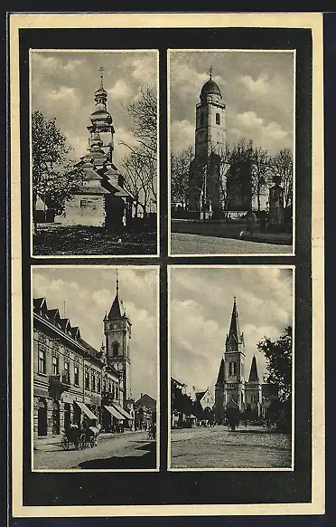 AK Munkács, Templomok, Ansichten verschiedener Kirchen