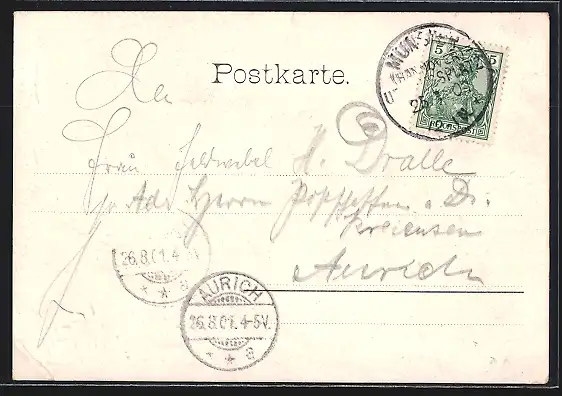 alte Ansichtskarte, gelaufen 1901, Eckknicke unten, minimaler Einriss oben mittig, guter Zustand