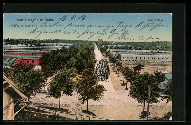 AK Munsterlager i. Hann., Truppenübungsplatz mit Baracken