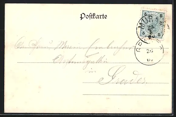 alte Ansichtskarte, gelaufen 1900, guter Zustand