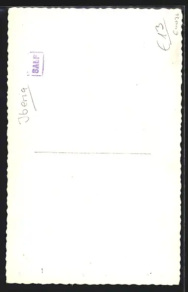 Personenbezogene Daten auf der Rückseite der Karte wurden durch blauen Textmarker unkenntlich gemacht. Die blauen Stellen sind auf die Vorderseite durchgeweicht und wirken sich negativ auf das Postkartenfoto aus