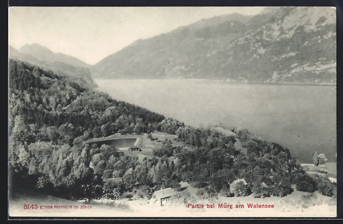 AK Murg am Walensee, Seepartie aus der Vogelschau