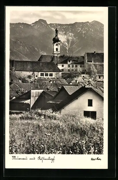 AK Murnau, Ortsansicht mit Berg