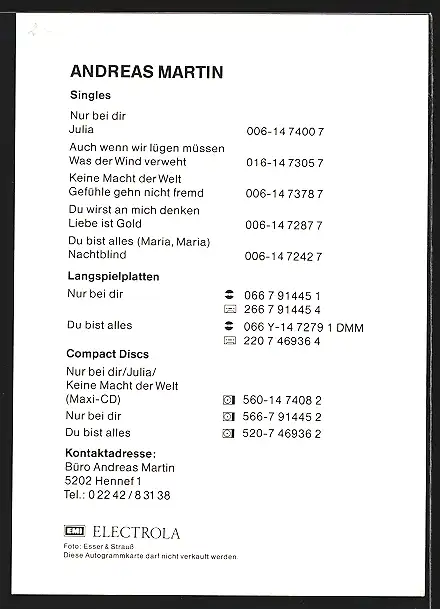AK Musiker Andreas Martin in Lederjacke, Autograph