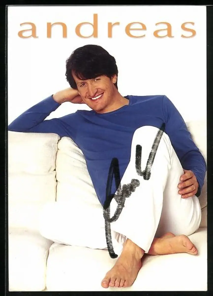 AK Musiker Andreas auf einem Sofa sitzend, Autograph