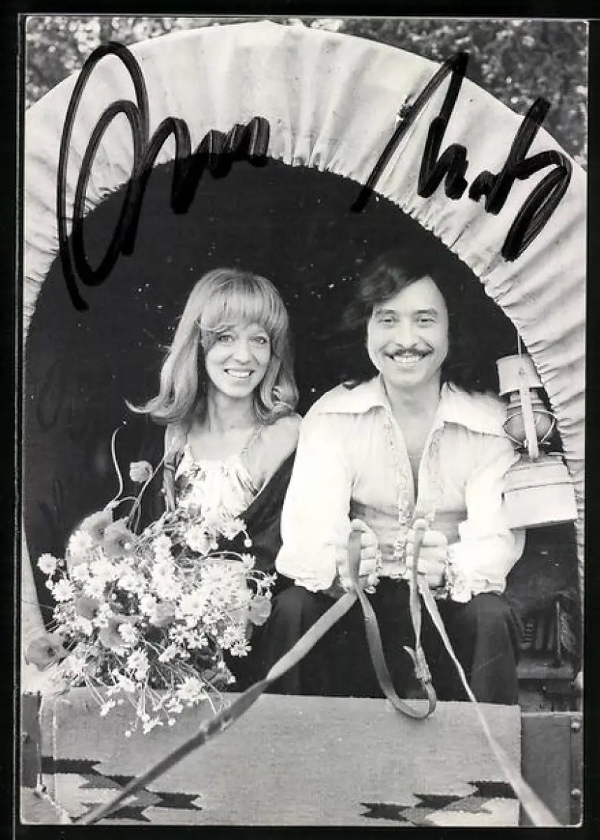 AK Musiker Ann & Andy in einer Pferdekutsche, Autograph