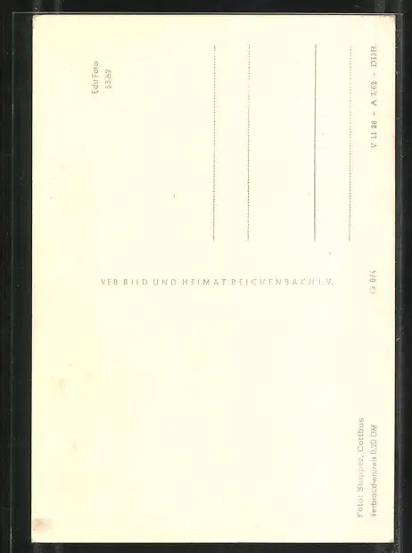 Personenbezogene Daten auf der Rückseite der Karte wurden durch blauen Textmarker unkenntlich gemacht. Die blauen Stellen sind auf die Vorderseite durchgeweicht und wirken sich negativ auf das Postkartenfoto aus