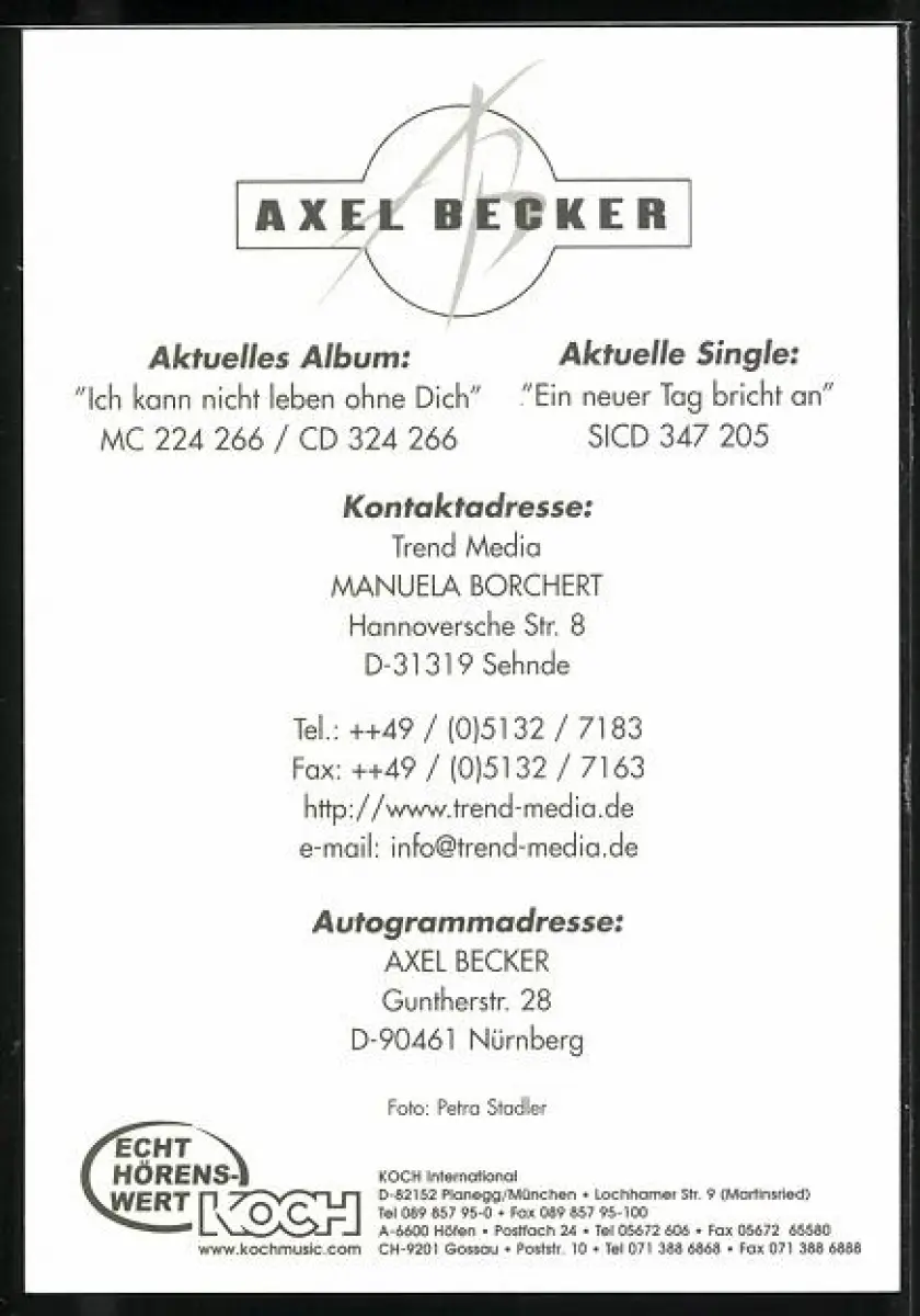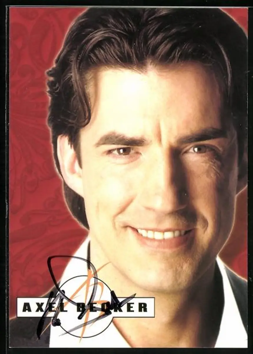 AK Musiker Axel Becker lächelnd im Porträt, Autograph
