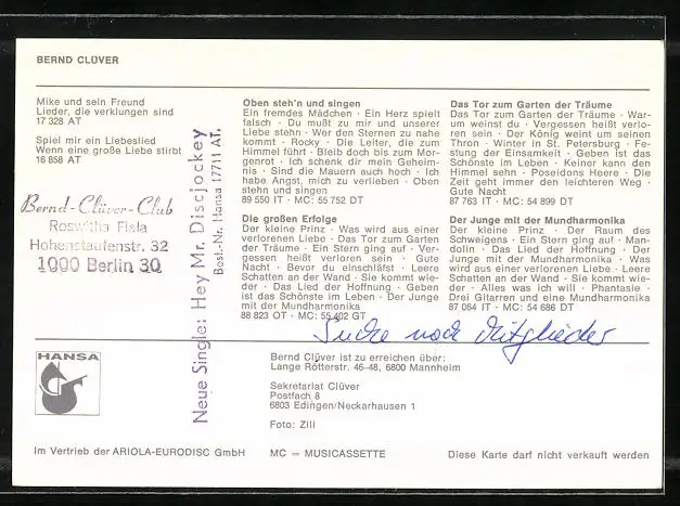 AK Musiker Bernd Clüver freundlich lachend mit Autograph