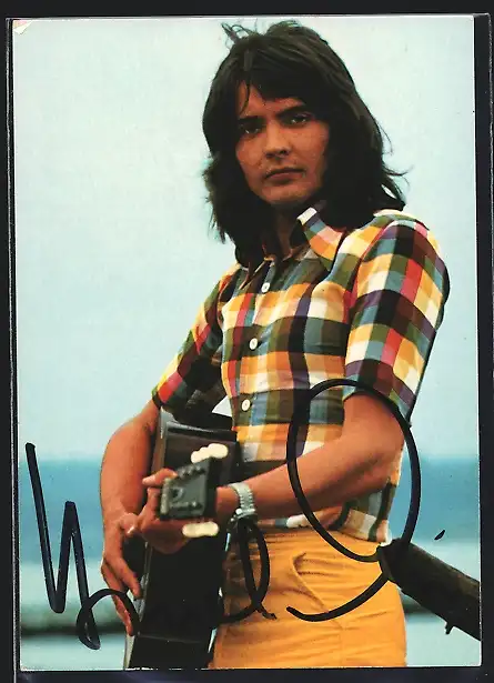 AK Musiker Bernd Clüver mit Gitarre, Autograph