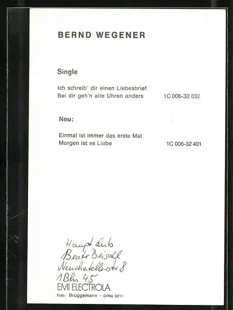 AK Musiker Bernd Wegener im Pullover, Autograph