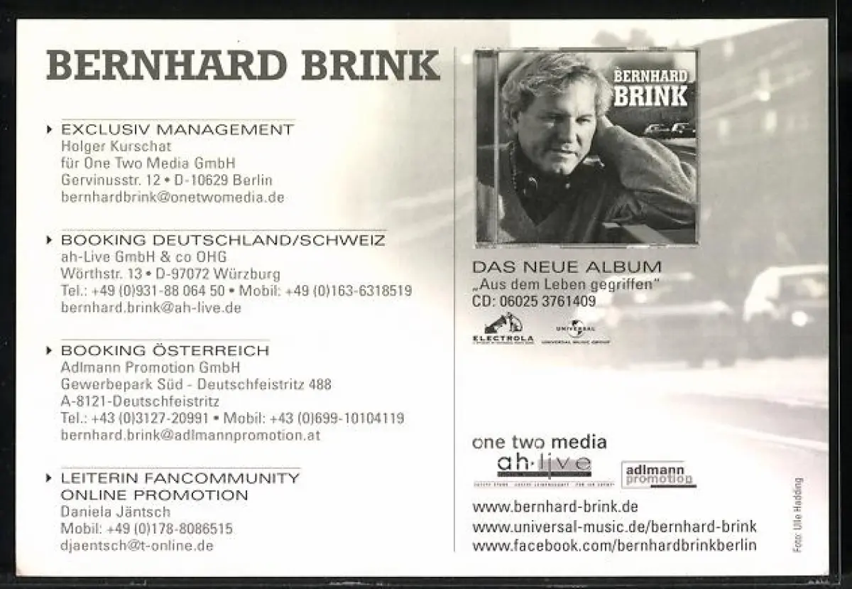 AK Musiker Bernhard Brink im Portrait, Autograph