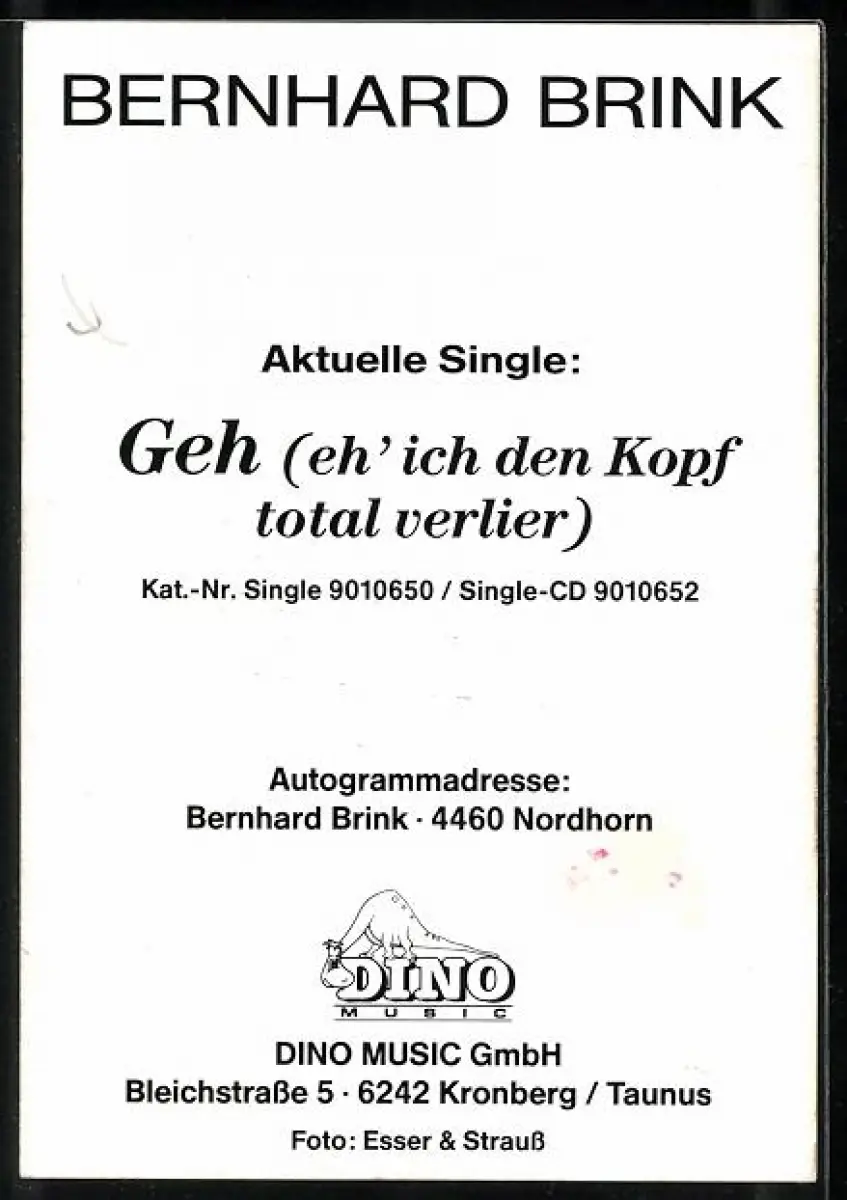AK Musiker Bernhard Brink in Lederjacke, Autograph