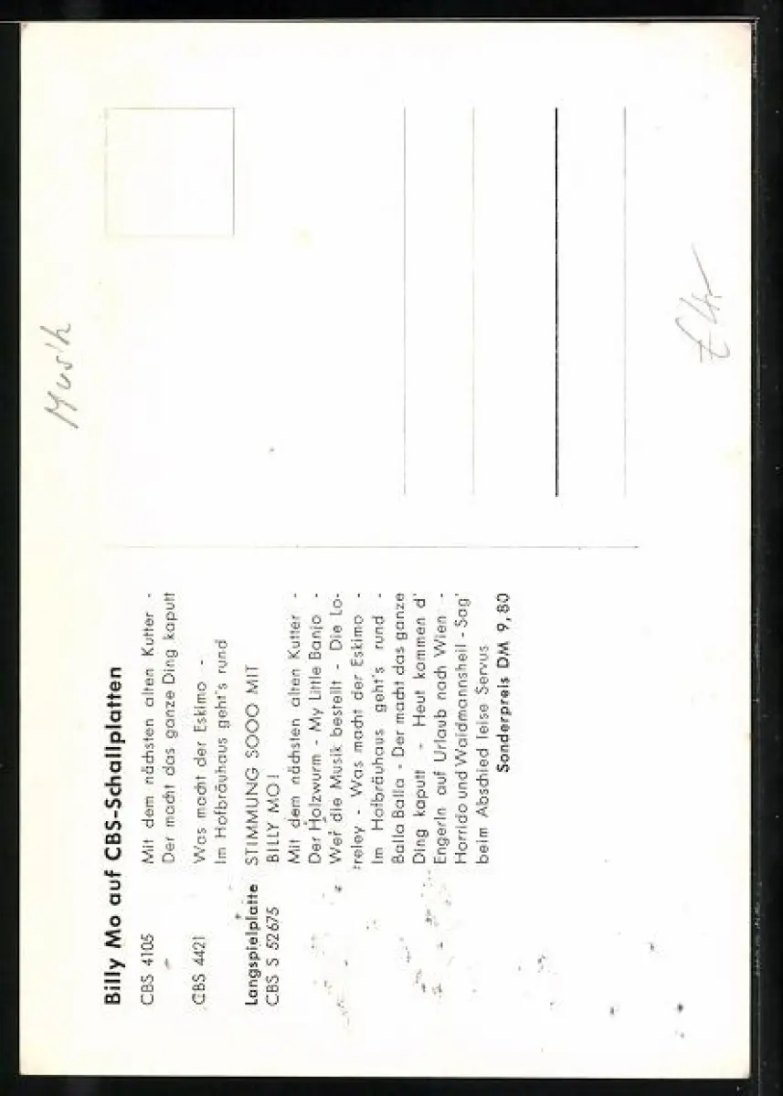 AK Musiker Billy Mo in hellem Strickpullover, Autograph