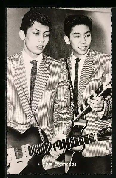 AK Musiker Blue Diamonds mit Gitarren in den Händen