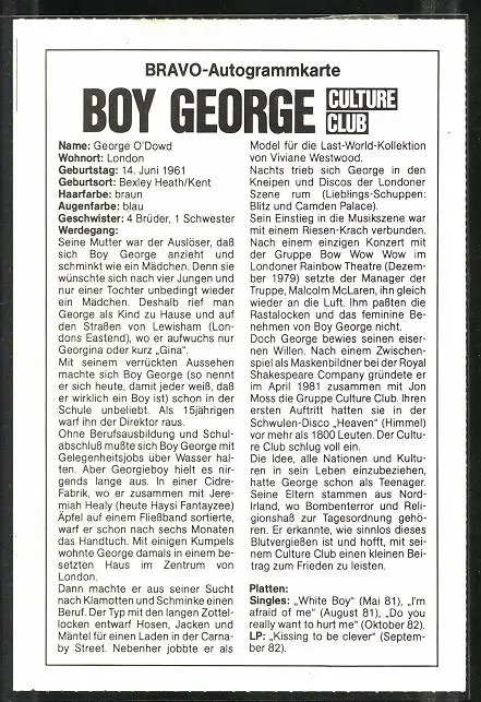AK Musiker Boy George blickt fragend in die Kamera