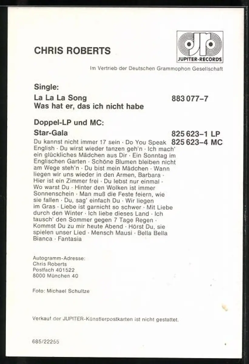 AK Musiker Chris Roberts im Porträt mit Autograph