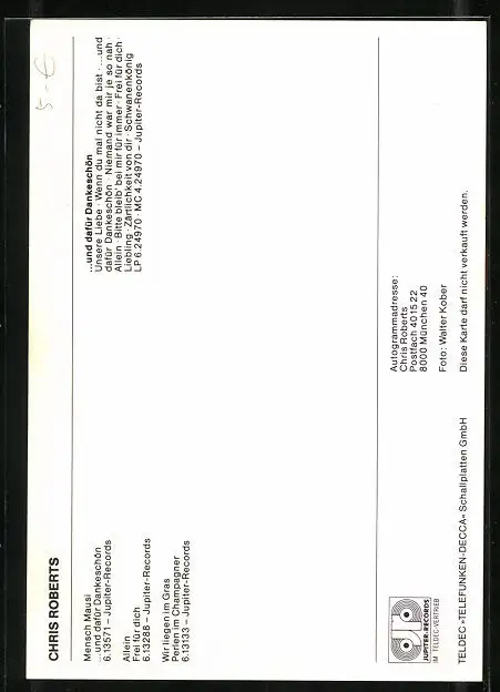 AK Musiker Chris Roberts im Porträt, original Autograph
