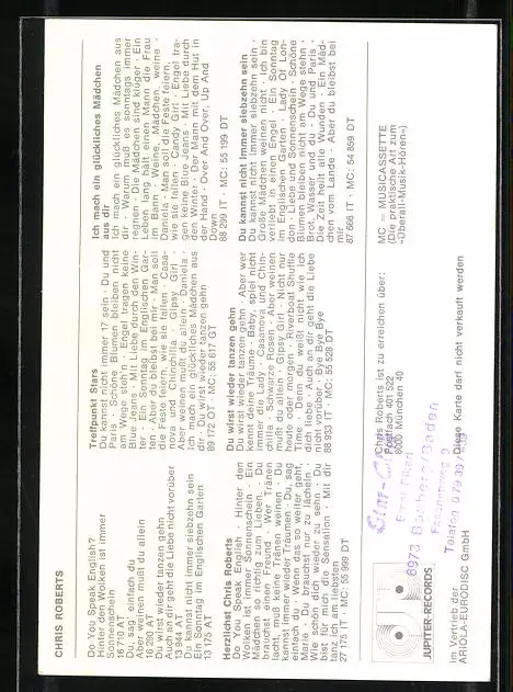 AK Musiker Chris Roberts im gemusterten Anzug, Autograph