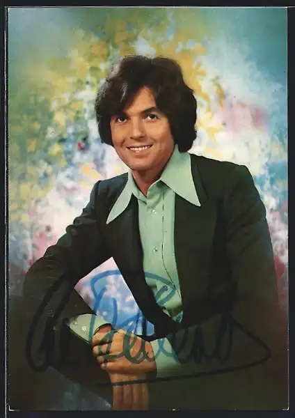 AK Musiker Chris Roberts in Anzug und grünem Hemd, Autograph
