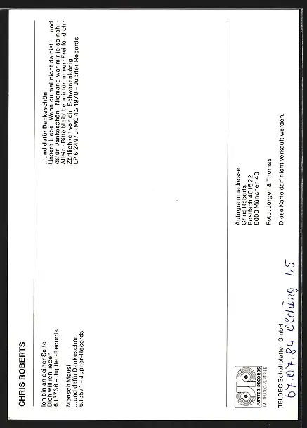 AK Musiker Chris Roberts mit Halskette, Autograph