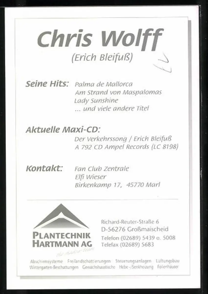 AK Musiker Chris Wolff auf einem Stuhl, Autograph