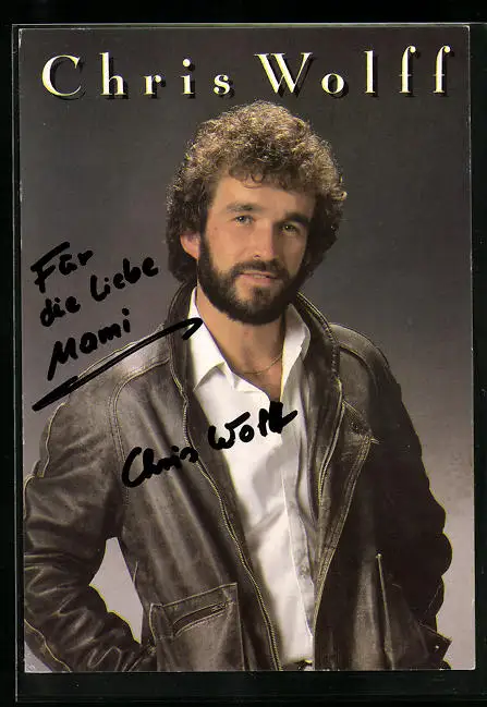 AK Musiker Chris Wolff in Lederjacke, Autograph