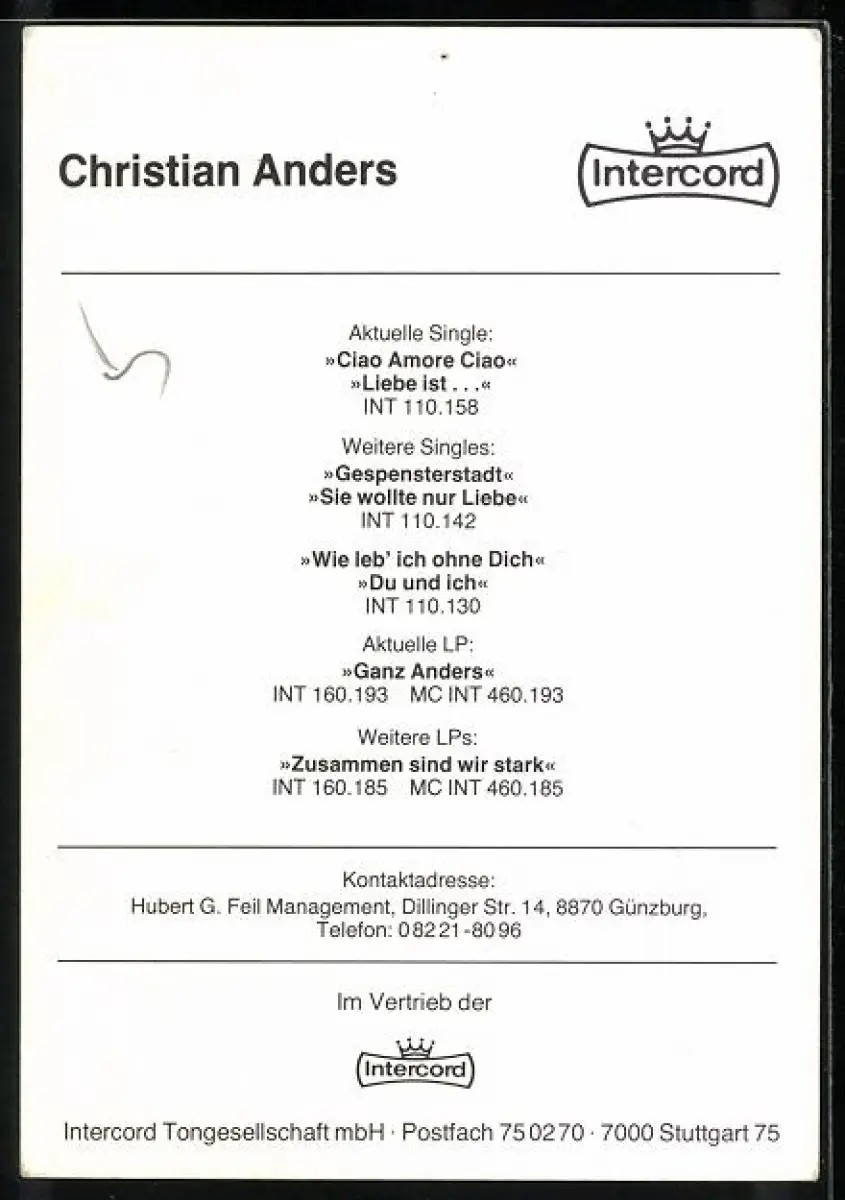 AK Musiker Christian Anders in Lederjacke, Autograph