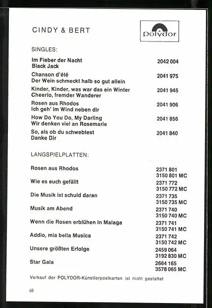 AK Musiker Cindy & Bert lächeln in die Kamera, Autograph