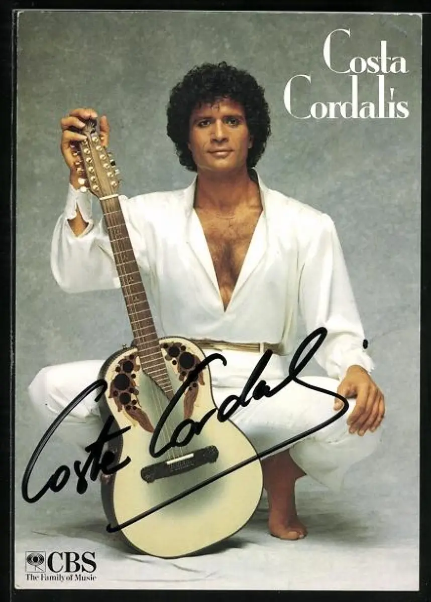 AK Musiker Costa Cordalis mit Gitarre, Autograph