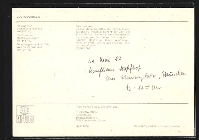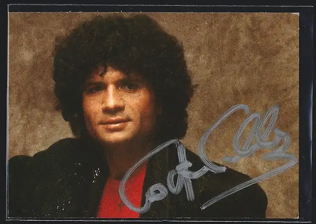 AK Musiker Costa Cordalis mit lockigem Haar, mit Autograph