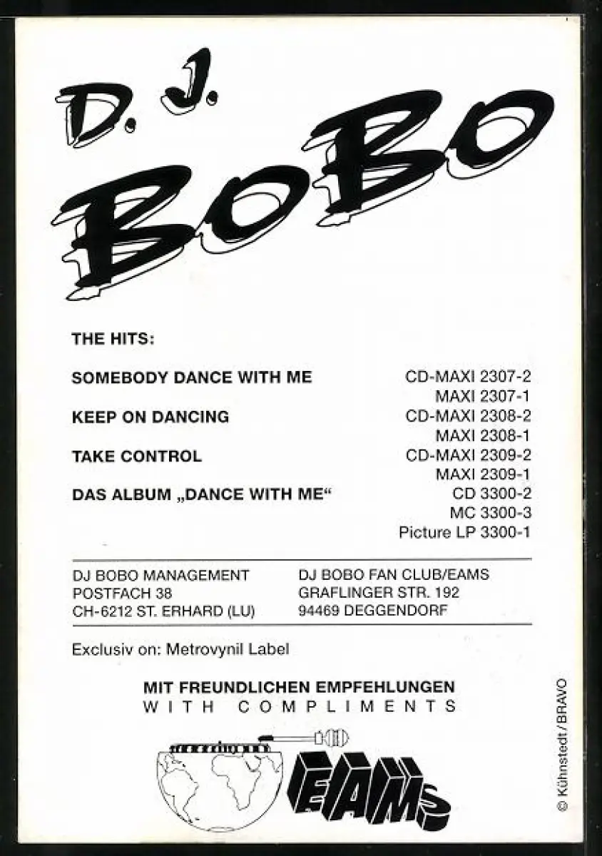 AK Musiker D.J. BoBo vor rotem Hintergrund, Autograph