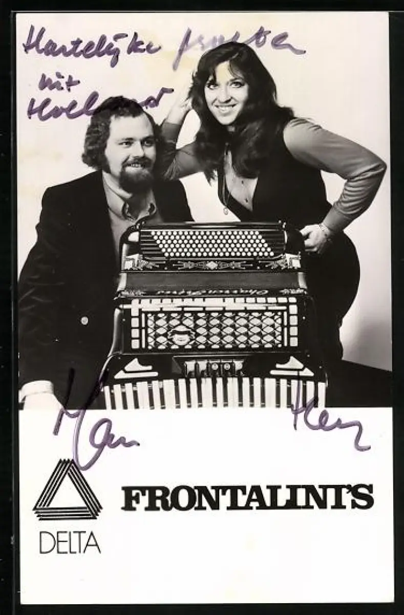 AK Musiker-Duo Frontalini`s mit Akkordeon, Autograph